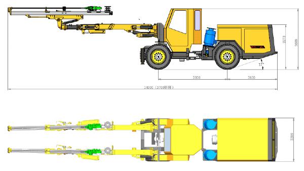 KJ421全液進鉆車用于16-68平方米斷面的進作業,可以苗直、飯斜和水平的爆破孔和錨桿孔。